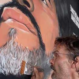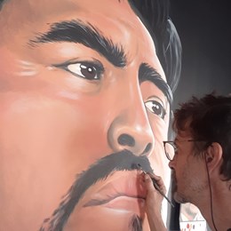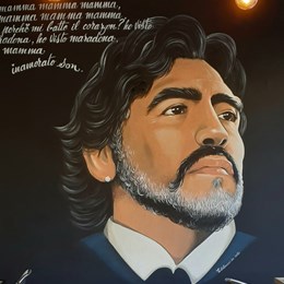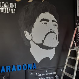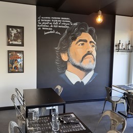 Fresque murale représentant Maradona, dans la salle des restaurants d'Ixelles et d'Anderlecht, d'une dimension de 2 mètres sur 3.5 mètres