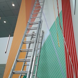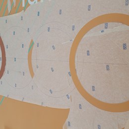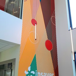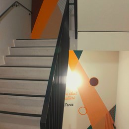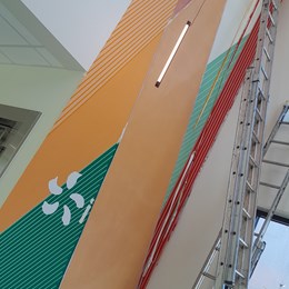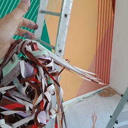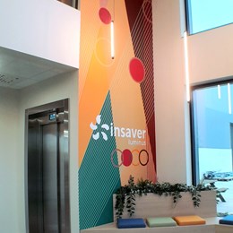Fresque murale de 3 mètres de large sur 7 mètres de haut, sur le mur d'accueil des nouveaux bâtiments de Insaver. Ainsi que la cage d'escalier. Différents aplats avec lignes entrecroisées où il a fallu beaucoup de réflexions pour que les enchevêtrements se superposent convenablement.