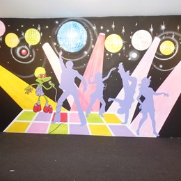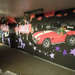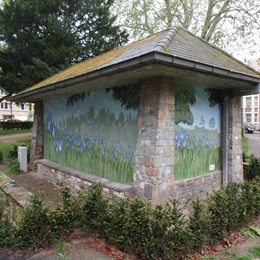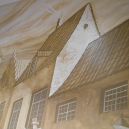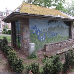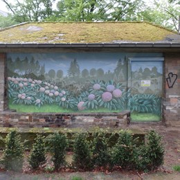 Décoration peinte sur les murs du pavillon au square Joséphine Charlotte, à Woluwe-Saint-Lambert