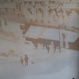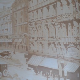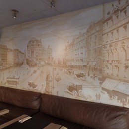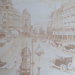 Fresque murale, place de Brouckère, en 1920 d’après 3 gravures et mise en perspective unique.
